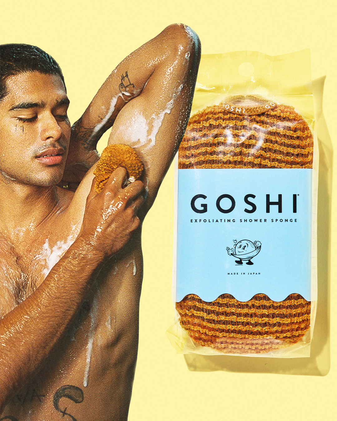 - Add your favorite liquid body soap to GOSHI and work into a generous lather.