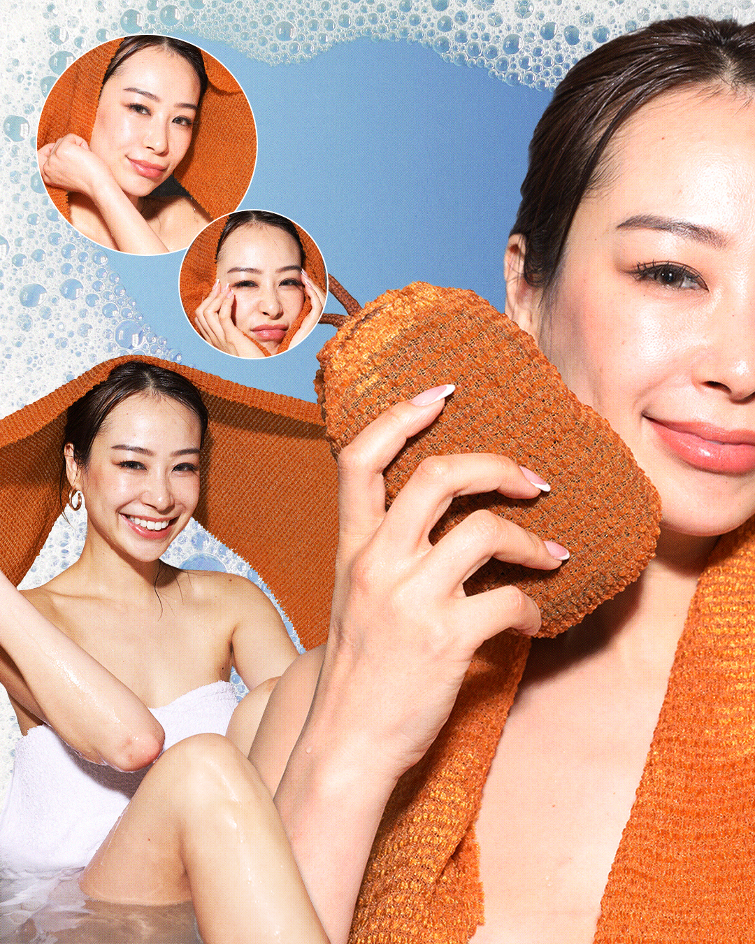 - Work GOSHI across your back and fold up the towel to finish the rest.